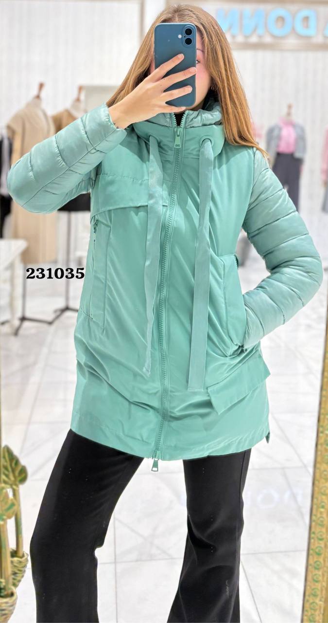 A comfortable jacket of medium length with a high stand collar and a good hood. Zipper pockets