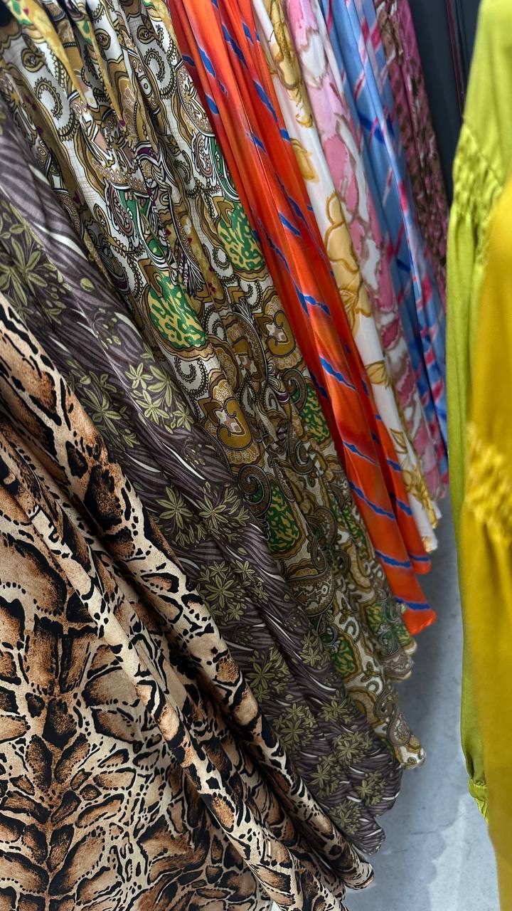 Viscose silk midi skirt with an elastic waistband, slightly flared towards the bottom