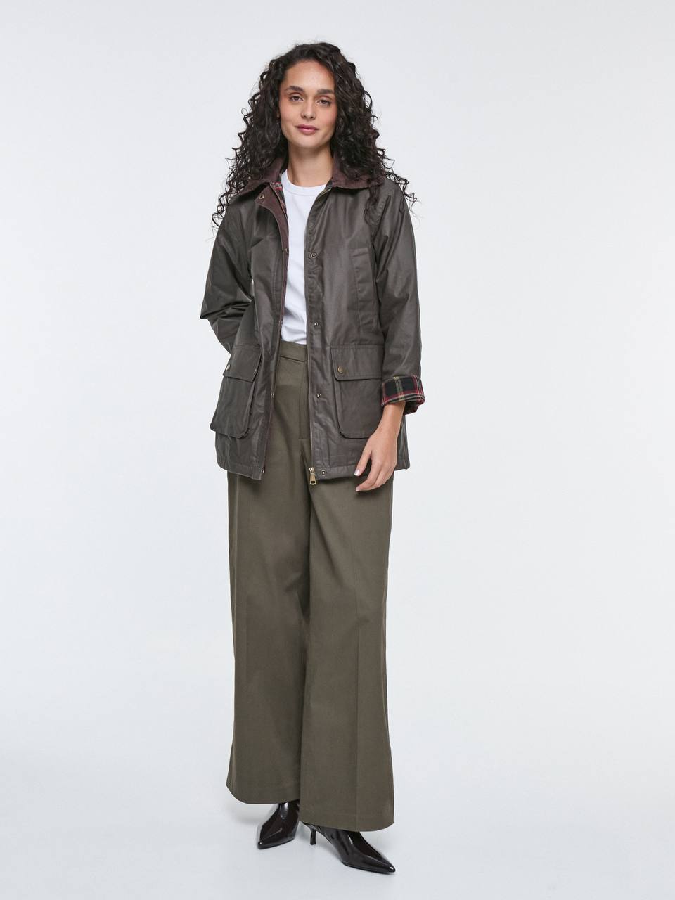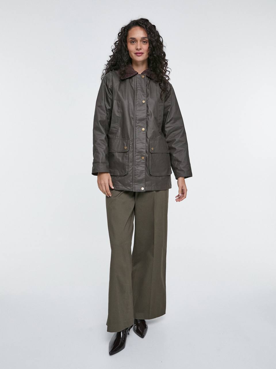 A windbreaker in perfect quality, with a zipper and buttons, beautiful lining, and a combination collar